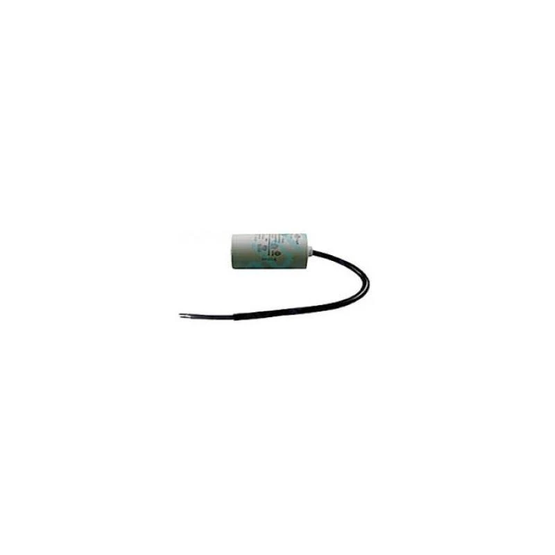 CONDENSATEUR 8µF FAAC composant électronique comprenant plusieurs câbles de 180 mm, compatible avec les moteurs 412, 415, 390, 402, 400, 422, 595, 550 et 615. Vendu à l’unité.