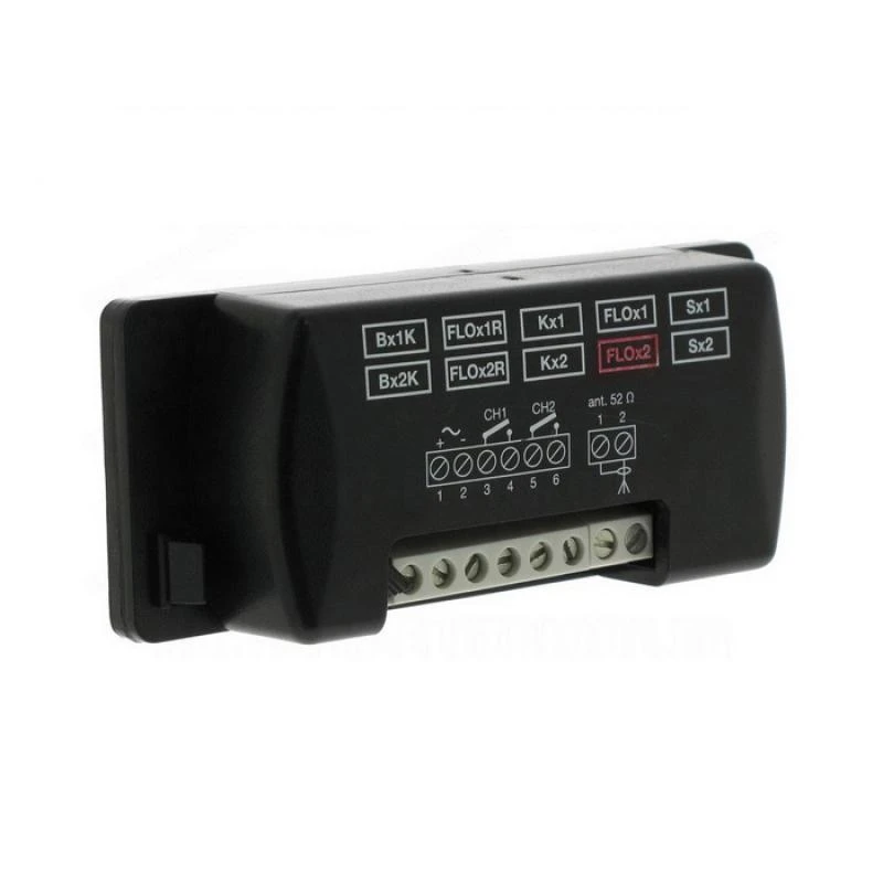 FLO FLOX2 NICE Récepteur radio universel 2 canaux pour télécommandes à dip switch en 433.92 Mhz. Ce récepteur autonome convient aux télécommandes FLO1, FLO2 et FLO4 avec code à switch. Facile à installer, alimentation en 12 -24 Volts..